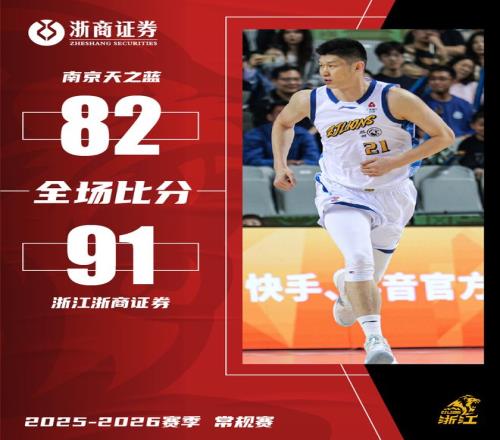 CBA常規賽第40輪,浙江浙商證券男籃客場迎戰南京天之藍。南京坐鎮主場,進入狀態較快,外線三分頻頻命中,浙商證券這邊則外線手感冰冷,全場三分球只有19投4中21.1%的命中率,球隊只能通過內線尋找得分機會,三節結束落后對手9分,進入末節球隊加強防守,增加身體對抗,南京進攻受阻,浙商證券末節實現逆轉,最終,浙江浙商證券91-82客場戰勝南京天之藍。