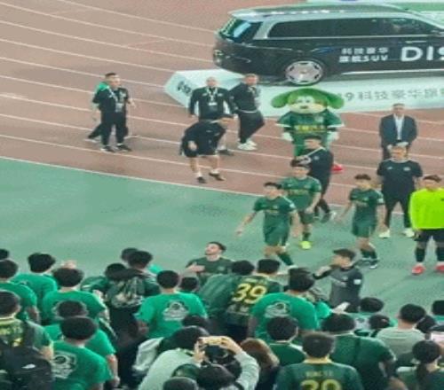 在賽后謝場(chǎng)時(shí),盧卡斯走向看臺(tái),與球迷發(fā)生了口角。隨后,現(xiàn)場(chǎng)球迷大喊,“下課,下課”。王鈺棟先是雙手一攤,示意球迷冷靜。