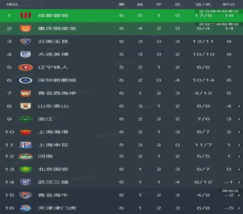 北京時間4月18日,昨晚的中超第6輪已經結束了6場比賽,我們看看最新積分榜的變動!