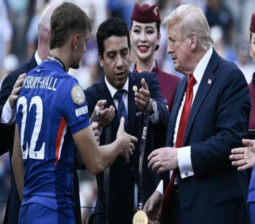 切爾西剛剛以3-0擊敗巴黎圣日耳曼,成為首屆世俱杯冠軍,而特朗普被邀請(qǐng)來(lái)頒發(fā)獎(jiǎng)杯。