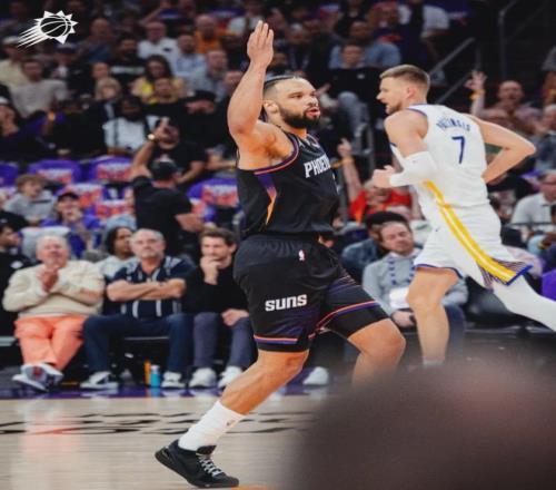 勇士改變防守,同時夾擊布克和杰倫-格林,放空其他太陽球員。羅伊斯-奧尼爾三分球前8投1中,末節最后4分鐘連中兩記三分。最后2分鐘,勇士依然落后15分。最后1分鐘,庫里被換下場,跟科爾和追夢擁抱,下賽季再見了!