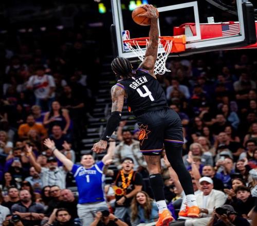 其次就是杰倫格林,常規賽階段格林基本都是處于養傷狀態,下半賽季復出后也是找狀態,直到賽季末期才慢慢回歸正常水平,32場常規賽場均得到17.8分3.6籃板2.8助攻談不上驚艷,最起碼不虧!到了附加賽兩場關鍵比賽,杰倫格林打出了超級球星的表現,在布克被鎖死的情況下,完美的扛起了球隊第一得分重任,打開拓者砍下35分5籃板,打勇士砍下36分6籃板4助攻,他得的每一分都至關重要,只要球隊需要他總能第一時間站出來硬解,可以說他就是太陽突圍的頭號功臣。