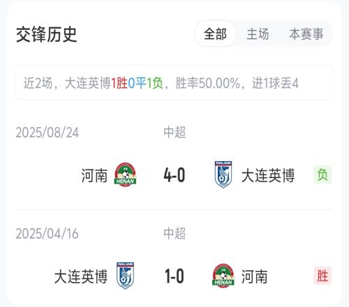 前5輪大連英博3勝2負,積9分暫居第四;河南2勝1平2負,積1分暫居第十二(河南被罰6分開局)。上賽季兩回合交手,雙方各自在主場取勝。