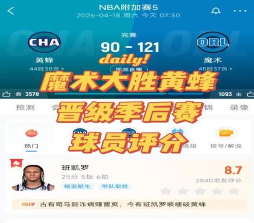 東部這邊的對決其實沒太多懸念,魔術(shù)坐鎮(zhèn)主場,直接以121比90大勝黃蜂,全場碾壓沒給對手留任何反撲的機會。首發(fā)五個人全部得分上雙,核心班切羅更是砍下25分5籃板6助攻,輕輕松松把東部最后一個晉級名額收入囊中,接下來首輪就對陣底特律活塞。加上之前提前拿到名額的76人,東部兩個晉級隊就此全部確定。
