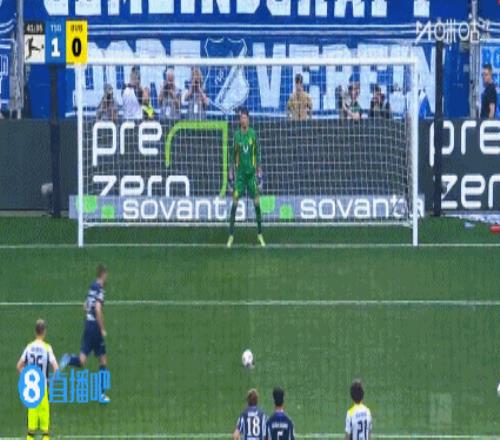 第38分鐘,霍村獲得點球!克拉馬里奇右路弧頂內切打門打在滑到的聚勒手上,裁判經過VAR回放判罰點球,克拉馬里奇主罰點球破門,隨后聚勒拉傷被換下,霍芬海姆1-0多特。↓