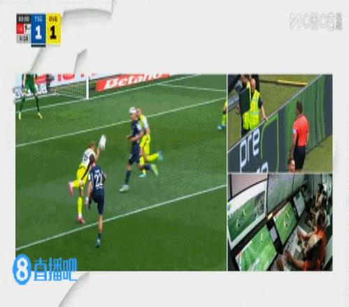 第95分鐘,霍村再次獲得點球!普拉斯左路弧頂傳到禁區打在萊爾森手上,裁判經過VAR回放后判罰點球,克拉馬里奇主罰點球破門,霍芬海姆2-1多特。↓