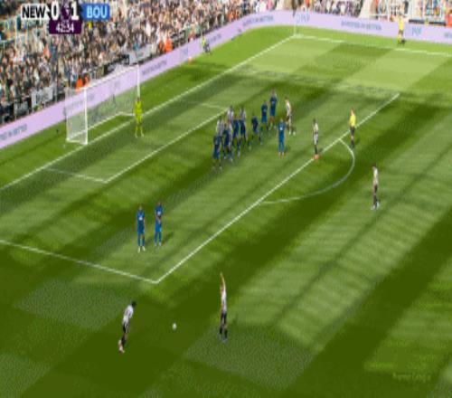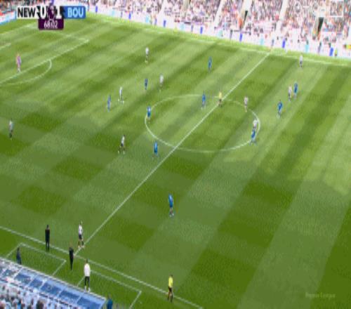 上半場傷停補時2分鐘,半場結束,紐卡斯爾聯暫0-1伯恩茅斯。