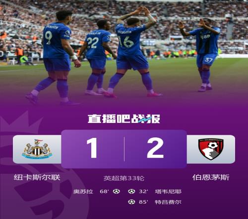 全場比賽結束,最終紐卡斯爾聯1-2伯恩茅斯。