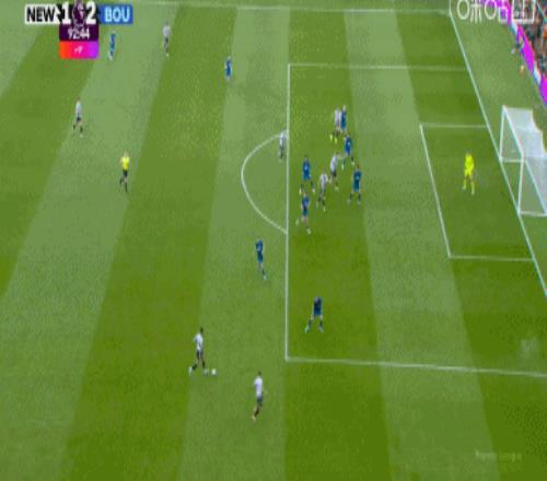 第68分鐘,埃瓦尼爾森中圈防守吉馬良斯時,拼搶中將球踢向本方半場,奧蘇拉前插幾乎單刀球的機會,調整后一腳低射攻破佩特洛維奇十指關,主裁判第一時間認定進球無效,VAR介入,最終主裁判做出決定,進球有效,紐卡斯爾聯1-1伯恩茅斯?!?/p>