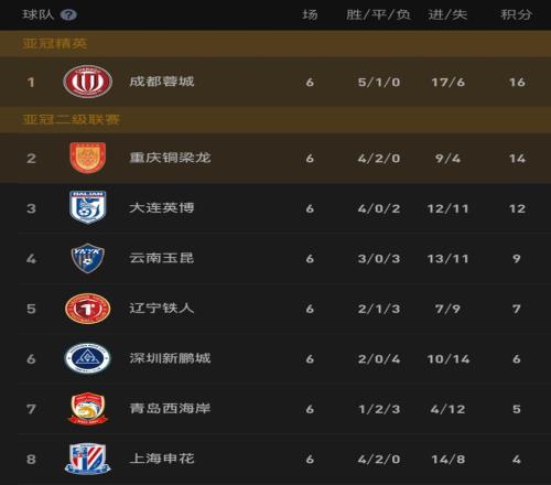 而升班馬重慶銅梁龍表現(xiàn)同樣出彩,本輪2-0完勝深圳新鵬城,同樣迎來(lái)3連勝并且開(kāi)局6輪不敗4勝2平,以2分之差繼續(xù)穩(wěn)居積分榜第2位。