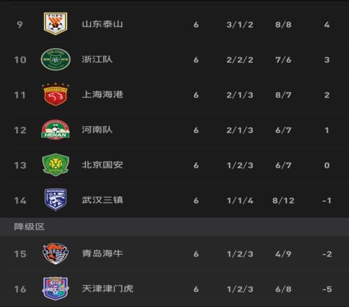 本輪比賽,國(guó)安盡管被浙江隊(duì)逼平,但憑借這1分,他們終于擺脫負(fù)分困擾,積分歸零。本輪過(guò)后,僅剩三鎮(zhèn)(-1)、海牛(-2)和津門虎(-5)依然處于負(fù)分狀態(tài)。
