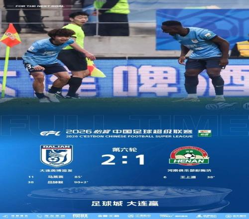 在主場大連梭魚灣足球場,大連英博海發隊以 2 比 1 逆轉戰勝河南俱樂部彩陶坊隊,收獲新賽季開局四連勝。上半場第 37 分鐘,河南隊隊長王上源在禁區內勁射破門;大連英博隊依靠實力優勢加強進攻,外援前鋒馬萊萊在第 85 分鐘小角度破門扳平比分。第 92 分鐘,呂焯毅在外圍凌空抽射打入世界波,幫助大連英博隊完成絕殺。此役現場觀眾人數達 61653 人,為本賽季梭魚灣球場最高上座率,在中超歷史上排名第五。大連英博隊此役全場控球率僅 28%,但 12 次射正 6 次轉化 2 球,延續 “低控球高轉化” 戰術風格。
