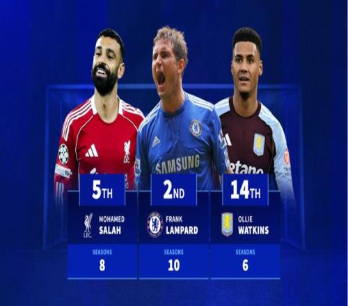 排名第二的是蘭帕德,更難得的是他還是中場球員。他在2003/04到2012/13賽季期間,為切爾西連續10個賽季進球上雙。