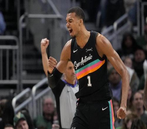 文班亞馬作為2023年的狀元秀,2米24的身高配上2米48的臂展,擁有NBA歷史頂級的運動能力,還能像后衛一樣運球,生涯第一個賽季就能交出場均21.4分10.6籃板3.9助攻3.6蓋帽的恐怖數據,短短兩個賽季就將馬刺從一支魚腩球隊帶成了本賽季的爭冠級球隊。就在剛剛文班亞馬也迎來了個人生涯的季后賽首秀!本賽季馬刺以西部第二的成績打入季后賽,首輪面對同樣以年輕球員為主的波特蘭開拓者隊,文班亞馬全場比賽登場33分鐘,投籃21中13,三分球6中5狂砍35分5籃板1助攻2蓋帽,帶領馬刺輕松戰勝開拓者取得季后賽開門紅。