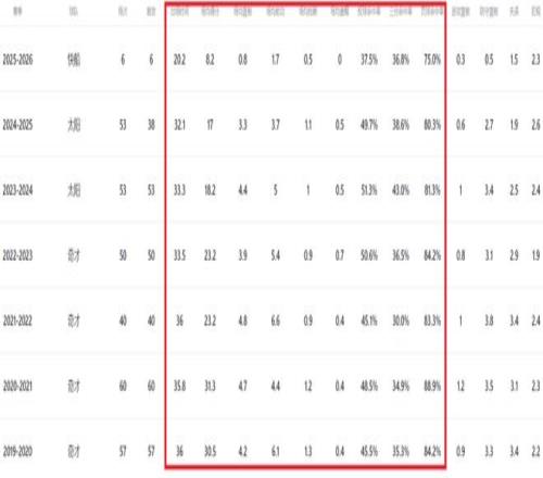 數據顯示,比爾22-23賽季常規賽(奇才),場均23.2分3.9板5.4助;23-24賽季常規賽(太陽)場均18.2分4.4板5助1斷,以及24-25賽季常規賽(太陽)場均17分3.3板3.7助1.1斷;本賽季常規賽(快船),場均8.2分0.8板1.7助。