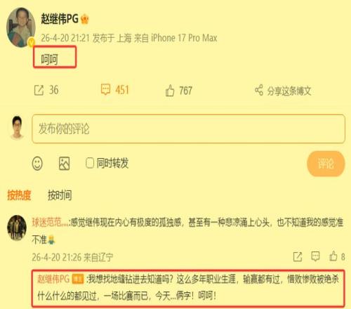 趙繼偉先是通過個(gè)人社交媒體發(fā)了“呵呵”這兩個(gè)字。正當(dāng)大家都在猜測(cè)他想要向外界傳遞的信息時(shí),為了不被誤解,或者是避免被過度解讀。所以趙繼偉對(duì)“呵呵”二字又進(jìn)行了解釋。
