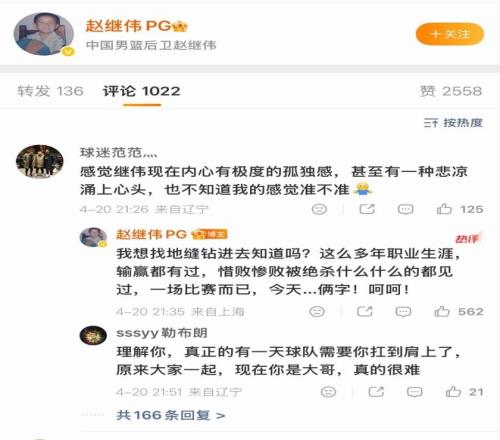 趙繼偉:呵呵 左右為籃 2026-04-21 09:57:05 CBA常規賽今晚繼續進行,遼寧男籃在客場對陣上海男籃,他們沒有太多的抵抗,以80比114慘敗34分,目送對手拿下21連勝。 值得一提的是,遼寧男籃核心后衛趙繼偉于賽后在個人社媒賬號發了一個“呵呵”,回復球迷時則情緒不佳,表示“我想找地縫鉆進去”,不知道他為何如此失落。趙繼偉免費觀看_CBA免費觀看_遼寧飛豹免費觀看_趙繼偉高清在線_CBA高清在線_遼寧飛豹高清在線 趙繼偉 CBA 遼寧飛豹 上海男籃 趙繼偉呵呵 上一篇: 什么情況趙繼偉:這么多年職業生涯什么都見過今天倆字“呵呵” 下一篇: CBA最新排名:前四名正式確定廣東又遭爆冷廣州北控懸念留到最后