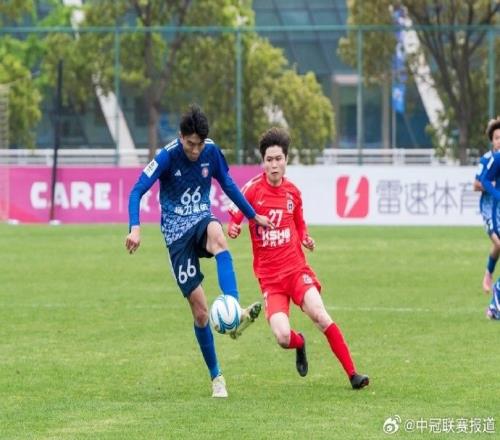 第40分鐘,昆山張浦競技中場攔截后就地進攻,分球給右側空位的46號徐永樂,后者帶球至禁區射門稍稍偏出,未能擴大比分。