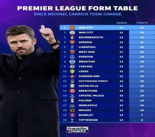 卡里克1月上任以來英超積分榜:曼聯(lián)第一,熱刺積4分倒數(shù)第一 直播吧 2026-04-21 16:46:47 體育播報(bào)4月21日宣 據(jù)轉(zhuǎn)會(huì)市場(chǎng)網(wǎng)站統(tǒng)計(jì),自從卡里克今年1月上任曼聯(lián)臨時(shí)主帥以來,曼聯(lián)已經(jīng)拿到26分,高居英超第一。同時(shí)期的12場(chǎng)比賽,曼聯(lián)8勝2平2負(fù)拿到26分,曼城11場(chǎng)(少賽一輪)24分,伯恩茅斯12場(chǎng)22分,阿森納12場(chǎng)21分位居第4。熱刺則在這期間12場(chǎng)比賽僅拿到了4分,穩(wěn)居倒數(shù)第一。 足球免費(fèi)觀看_英超免費(fèi)觀看_曼聯(lián)免費(fèi)觀看_足球高清在線_英超高清在線_曼聯(lián)高清在線 足球 英超 曼聯(lián) 切爾西 阿森納 曼城 利物浦 熱刺 阿斯頓維拉 上一篇: 西漢姆平局后努諾送狼隊(duì)提前降級(jí),他1718賽季帶狼隊(duì)升超 下一篇: 羅塞尼爾:高層對(duì)我充滿信任打進(jìn)歐冠接下來工作確實(shí)會(huì)輕松許多