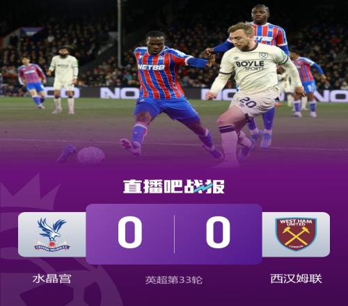 本輪英超進行的最后一場比賽,西漢姆0-0悶平水晶宮取得一分,領先降級區2分。這也意味著英超墊底的狼隊提前5輪確認降級至英冠聯賽!