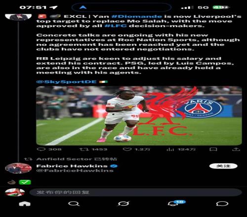 PJ與天體:隨著埃基蒂克受傷,利物浦已啟動與紅牛邊鋒迪奧曼德的談判。預計85m+。不過大巴黎也在虎視眈眈。