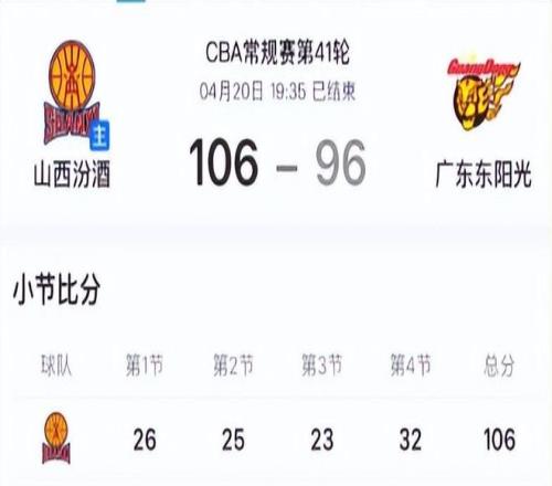 身為聯(lián)盟歷史底蘊最深厚的勁旅之一,廣東隊客場以96-106負(fù)于山西隊,不僅遭遇連敗打擊,更正式宣告退出常規(guī)賽前四名爭奪戰(zhàn)。