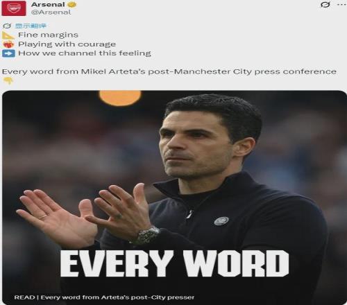賽后新聞發布會很短,阿爾特塔看來也不想多說,這時候行動比言語更重要。