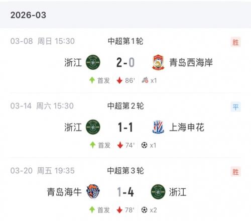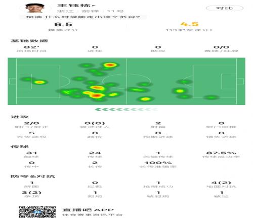 突然啞火!王鈺棟前3輪3球1助,近4輪0球0助浙江4輪不勝+1球未進 直播吧 2026-04-22 08:02:36 體育播報04月21日宣 北京時間19:35,中超第7輪,武漢三鎮2-0浙江,浙江隊遭遇4輪不勝,且近4輪0進球。本場比賽,王鈺棟首發出戰82分鐘,沒有進球和助攻。本賽季中超開賽前3輪,王鈺棟3場比賽貢獻3球1助,但近4輪0球0助,陷入球荒。前3輪比賽,米特里策貢獻1球3助,他與王鈺棟合計貢獻5球,而浙江隊至今一共打入7球。米特里策停賽后對浙江進攻線的影響非常明顯,而米特里策如今還要停賽2輪。本場王鈺棟數據↓足球免費觀看_中超免費觀看_中國足球免費觀看_足球高清在線_中超高清在線_中國足球高清在線 足球 中超 中國足球 浙江 武漢三鎮 上一篇: 積分轉正!武漢三鎮20送浙江4輪不勝貝維斯傳射卡迪斯建功 下一篇: 三鎮外援貝維斯:終于贏球非常興奮,對團隊的努力感到非常自豪