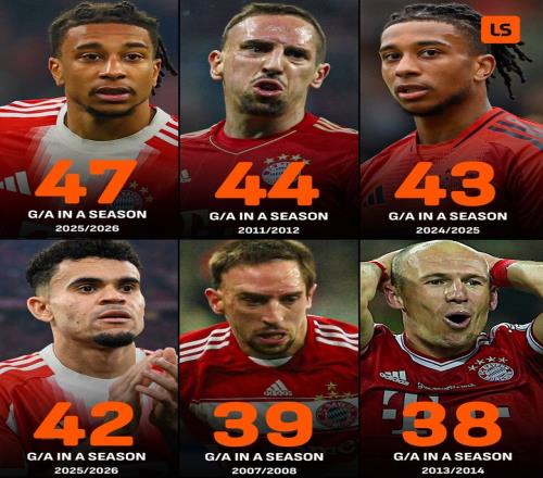 奧利塞本賽季直接參與47球,超過拜仁隊史近年來任何一名邊鋒 x 2026-04-22 08:14:39 體育播報4月21日宣 拜仁邊鋒奧利塞本賽季在各項賽事出戰44場比賽,貢獻18球29助攻,直接參與47個進球。據LiveScore數據統計,奧利塞本賽季各項賽事直接參與進球數超過拜仁隊史近年來任何一名邊鋒。具體統計如下:1、奧利塞:47球(25-26賽季)2、里貝里:44球(11-12賽季)3、奧利塞:43球(24-25賽季)4、路易斯·迪亞斯:42球(25-26賽季)5、里貝里:39球(07-08賽季)6、羅本:38球(13-14賽季)足球免費觀看_拜仁慕尼黑免費觀看_德甲免費觀看_足球高清在線_拜仁慕尼黑高清在線_德甲高清在線 足球 拜仁慕尼黑 德甲 上一篇: 圖片報:多特有意不萊梅18歲后衛庫利巴利,球員傾向于留在德甲 下一篇: 好消息!拜仁官方:比朔夫今日恢復跑步訓練
