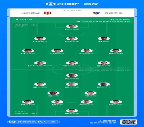 體育播報04月21日宣 北京時間今晚19點35分,中超第7輪,成都蓉城vs云南玉昆,賽前兩隊首發陣容出爐。【本場比賽,蓉城方面拜合拉木、韋世豪先發,費利佩替補,玉昆方面奧斯卡、徐新、約尼查出戰】