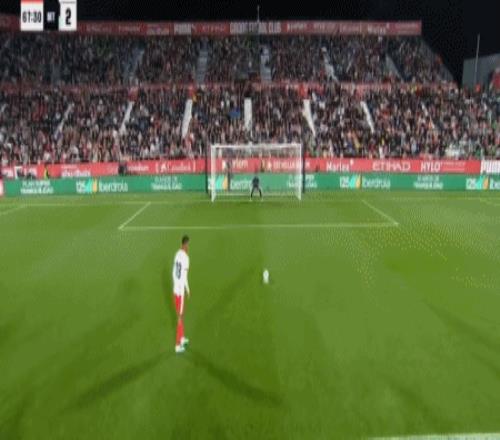 第68分鐘,霍埃爾-羅卡造點,歐納希主罰點球命中扳平比分,赫羅納2-2