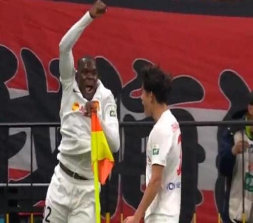 第57分鐘,李新翔內切扣過恩加德烏,隨后兜遠角破門,海港扳回一城,1-2!