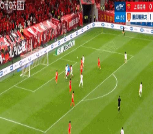 第45分鐘,顏駿凌出擊失誤,陳純新推空門得手,銅梁龍2-0!