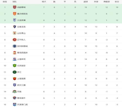 作為領頭羊球隊,成都蓉城開局六輪連續不敗,但領先優勢僅2分,稍有不慎可能會被身后的升班馬重慶銅梁龍超越。