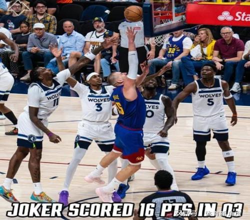 掘金則依舊難改老比分領先便全員松懈,被森林狼僅用半節時間便追平分差,比賽節奏就此落入森林狼之手。約基奇半場僅出手6次,直到第三節才單節狂砍16分,試圖力挽狂瀾。但森林狼的韌性已如銅墻鐵壁,堅不可摧。