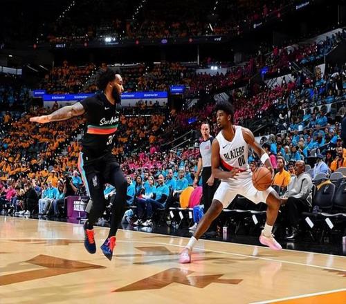在此前的一場NBA季后賽中,常規賽排名西部第2位的圣安東尼奧馬刺坐鎮主場以111比98完勝了常規賽排名西部第8位并且是通過附加賽才晉級季后賽的波特蘭開拓者。本場比賽后,開拓者的先發后場新星斯庫特-亨德森(Scoot Henderson)接受了記者的采訪,他在采訪中被問到了球隊在第三節勢頭方面的問題以及自己在本場比賽中表現的問題。