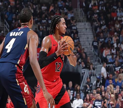本場比賽中,猛龍的替補鋒線新秀科林·穆雷-博伊爾斯(Collin Murray-Boyles)的表現也算是具備一定的亮點的。穆雷-博伊爾斯全場出場25分54秒,投籃10中6,三分線外2中0,罰球6中5,得到了17分7籃板1助攻1搶斷1蓋帽的數據,還有1次失誤和2次犯規,正負值為-6。令人有些意外的是,穆雷-博伊爾斯似乎是反而是猛龍全隊最穩定的得分點之一了,他的進攻效率相當不錯,他也是展現出了相當不錯的籃下得分能力和終結能力,他也是得到了不少分數。穆雷-博伊爾斯不僅在進攻端表現不錯,他在防守端也展現出了自己不俗的防守能力,同樣起到了很好的效果??傮w來看,穆雷-博伊爾斯在本場比賽中算是展現出了自己在攻防兩端的潛能,起到了很好的效果。只是球隊不少先發球員的表現實在是太糟糕了,穆雷-博伊爾斯的努力也沒有辦法收到回報。