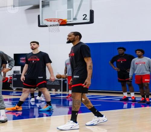 今天我們也看到了杜蘭特出現在火箭隊的訓練場上,他和隊友們都在一起訓練。杜蘭特看上去比較輕松,和隊友們有說有笑,在進行投籃練習的時候,也一直笑容滿面,只不過他受傷的右側膝蓋貼滿了護具,像是膠布一樣的東西。看上去杜蘭特的傷勢還是沒有完全的好,否則的話火箭隊也不會將傷病名單中的杜蘭特列為出戰成疑了。