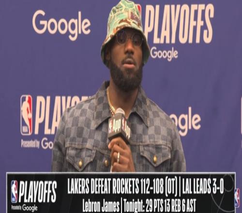 體育播報4月25日宣 NBA季后賽西部首輪G3,湖人加時112-108戰勝火箭,大比分3-0領先。賽后詹姆斯接受了媒體采訪,以下為采訪全文。