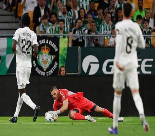 然而這里不是伯納烏,貝蒂斯球迷更想看另一個巴西人表演。安東尼和另一側的阿卜德輪番出擊,幾次圍攻皇馬禁區幾乎得手。在這種相互“圍魏救趙”的奇異情境下,貝蒂斯的攻門質量反而顯得更高一點。盧寧在十幾分鐘內幾乎透支了自己的“神撲”額度,一波高接抵擋的三連撲讓貝蒂斯球員懊惱,更映襯出皇馬球員的麻木。好像沒人愿意為這種險情擔責任。