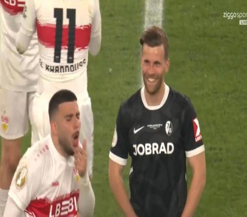 身體不適,斯圖加特球員哈努斯在比賽中嘔吐 懂球帝 2026-04-25 18:17:56 北京時間4月24日凌晨,德國杯半決賽,斯圖加特主場對陣弗賴堡,最終斯圖加特2-1擊敗弗賴堡。比賽常規時間,雙方戰成1-1平,雙方進入點球大戰,最終斯圖加特憑借著蒂亞戈-托馬斯的進球絕殺成功晉級決賽。比賽中,斯圖加特中場哈努斯身體不適,轉播鏡頭隨后將鏡頭從球場上移開,因為這名球員似乎嘔吐了,之后他把頭埋進了球衣里。雙方球員和裁判都向替補席示意,要求關注埃爾哈努斯的情況。哈努斯隨后站起來向醫療團隊揮手,不過他看起來沒事可以繼續比賽。然而隊友昂達夫在被裁判要求用球鞋將嘔吐物在草地上攤開后,看起來比埃爾哈努斯更不安。他在完成這個惡心的任務后反復捂住嘴,似乎要作嘔。嘔吐免費觀看_哈努斯免費觀看_德國杯免費觀看_嘔吐高清在線_哈努斯高清在線_德國杯高清在線 嘔吐 哈努斯 德國杯 弗賴堡隊 斯圖加特隊 蒂亞戈·阿爾坎塔拉 上一篇: 專訪五大聯賽第一位女主教練瑪麗路易絲埃塔:有信心留在德甲 下一篇: 桑喬已同意重返多特!曼聯承諾其免費走人,放棄激活自動續約條款