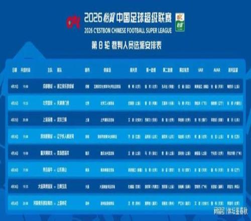 今晚,中超聯賽第8輪將全面展開,足協在今天上午公布了本輪各場比賽的裁判安排。北京球迷關注的京津德比戰的主裁判是來自上海的沈寅豪。沈寅豪執哨風格穩健,在球迷中評價還算說得過去。本賽季從第2輪聯賽開始執法中超,第4輪在深圳新鵬城對陣武漢三鎮的比賽中擔任主裁判。