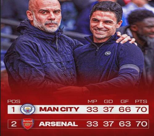 雙方的凈勝球甚至都是一樣的,同是70分,同是37個凈勝球,甚至要用進(jìn)球數(shù)來分勝負(fù),可見差距有多小……但就在不久前,阿森納其實還領(lǐng)先9分的……