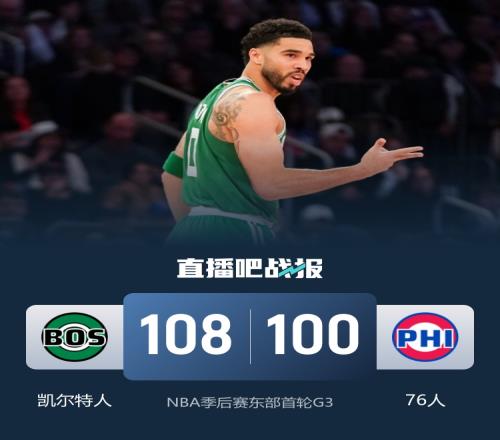 比賽上來(lái),凱爾特人先拿4分搶下開(kāi)局,不過(guò)76人迅速就用一波7-0的小高潮完成反超,之后兩隊(duì)開(kāi)始展開(kāi)拉鋸,場(chǎng)上比分交替領(lǐng)先,首節(jié)末憑借著三記三分球凱爾特人再次獲得優(yōu)勢(shì),次節(jié)凱爾特人的外線手感還在,分差很快達(dá)到兩位數(shù),76人雖然還有追分勢(shì)頭卻無(wú)法完成反超,半場(chǎng)結(jié)束時(shí)凱爾特人領(lǐng)先7分;下半場(chǎng)回來(lái),喬治突然爆發(fā)個(gè)人連拿8分,76人利用一波12-0的攻勢(shì)直接完成反超,雙方此后再次陷入膠著,比賽懸念打到了最后,關(guān)鍵時(shí)刻凱爾特人的外線又來(lái)了,塔圖姆和普理查德連中三分球,最終凱爾特人險(xiǎn)勝76人大比分2-1再次領(lǐng)先。