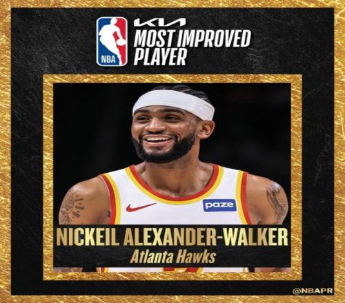 NBA官方:老鷹球員亞歷山大·沃克當選本賽季最快進步球員