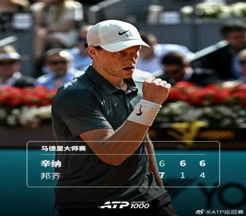ATP1000馬德里大師賽第二輪,辛納逆轉擊敗資格賽選手邦齊,晉級32強。三盤比分:6比7、6比1、6比4。辛納豪取大師賽23連勝,晉級32強,接下來他將對陣另一位資格賽選手莫勒。