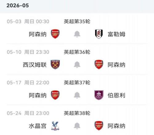 目前,阿森納與曼城在英超的爭冠形勢十分膠著。槍手還有4輪聯賽要打,曼城則還有5輪聯賽;阿森納暫時多賽一輪,以3分的優勢領先曼城。凈勝球方面,憑借著1-0擊敗紐卡斯爾聯的勝利,阿森納的凈勝球比曼城多出1個;聯賽進球數方面,阿森納打入64球,曼城則以66球略占優勢。
