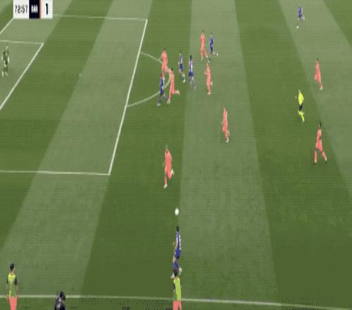 萊萬多夫斯基輕巧出球,拉什福德高速前插,單刀破門,鎖定勝局。