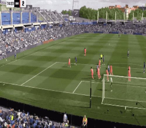第73分鐘,赫塔費(fèi)差點(diǎn)扳平比分,庫巴西做出了堪比進(jìn)球的關(guān)鍵解圍,赫塔費(fèi)的界外球投入重兵。