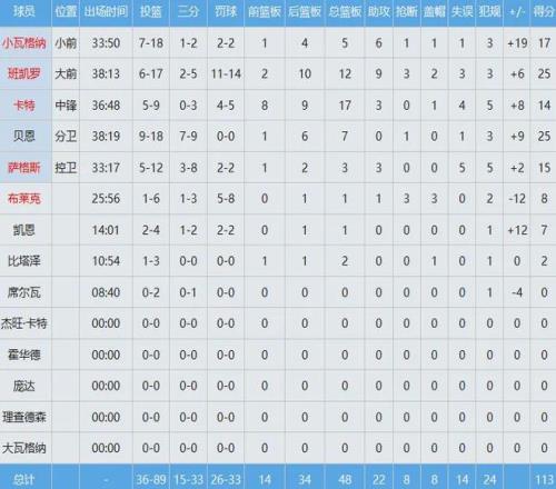 去年休賽期7換1交易來的貝恩,化身東部庫里三分9中7砍下25分外加7板;22屆狀元郎班凱羅盡管進攻效率低下,可命中了鎖定勝局的關鍵三分球,全場投籃17中6得到25分12板9助3斷2帽全面數據。